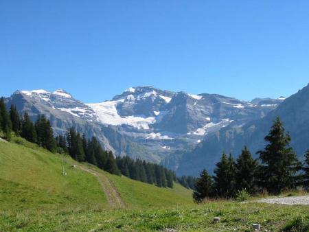 Superbe chalet de 4 chambres à coucher, 2 salles de bain, 10 lits. Grand salon, salle à manger, cuisine. (environ 200 m2)Terrasse en sud ouest, balcons face aux Dents du Midi. Sur la route de Sur Cou. (2km5 du village)